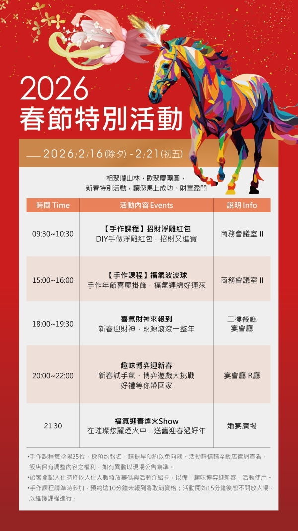 應景手作、趣味博弈與迎春煙火秀,新春特別活動,邀您闔家同樂、熱鬧歡慶迎新年