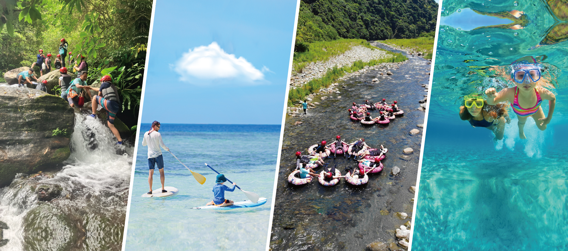 從溯溪的沁涼、SUP的自在漂遊,到浮潛探索海底世界,或順流飄盪的漂漂河時光—